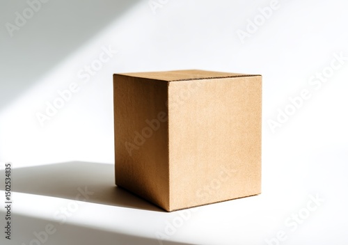 Cardboard box on white background, clean packaging concept, natural lighting, simple and minimalist design