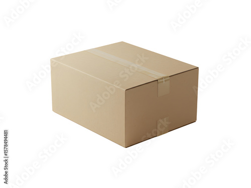 Cardboard box sealed with tape, isolated on transparent background with shadow — perfect for warehouse, shipping, packaging, delivery, e-commerce, and logistics mockups or designs.