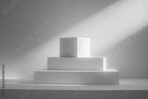 Cardboard boxes arranged in a minimalist white room with soft natural light