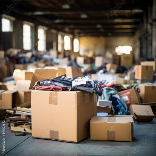 Cardboard Boxes Filled With Clothes in a Large Warehouse