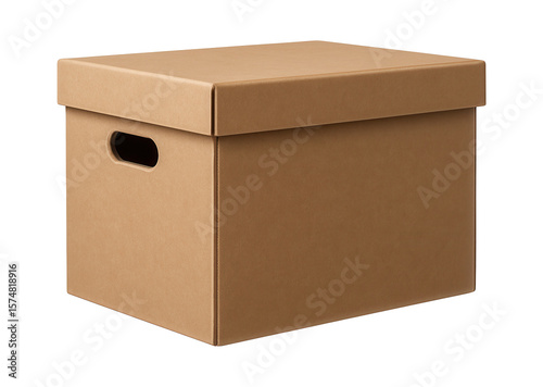 Cardboard storage box with a reinforced bottom for archiving documents in a home office.