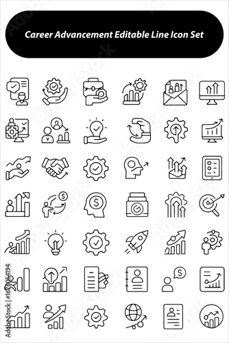 Career Advancement Editable Line Icon Set – Vector Illustration