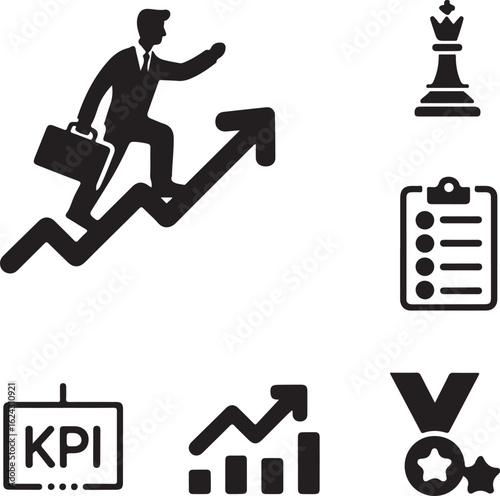 Career and Performance Solid Icons Productivity, Strategy, and Climbing Success Vector Set