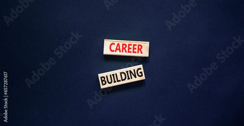 Career building symbol. Concept words Career building on beautiful wooden block. Beautiful black table black background. Business, motivational career building concept. Copy space.