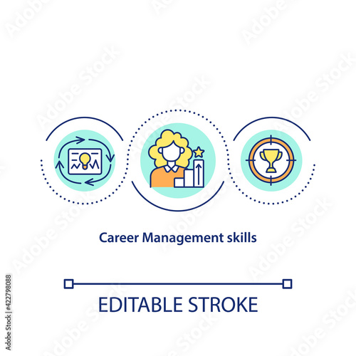 Career management skills concept icon. Professional competencies development idea thin line illustration. Career goals achievement. Vector isolated outline RGB color drawing. Editable stroke
