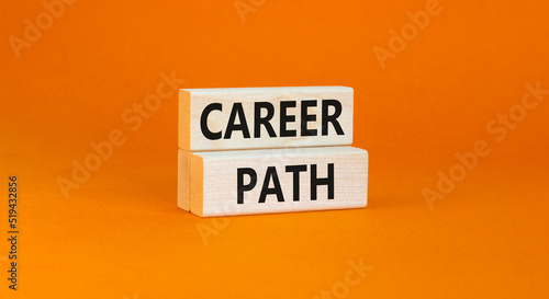 Career path symbol. Concept words Career path on wooden blocks on a beautiful orange table orange background. Business Career path concept. Copy space.