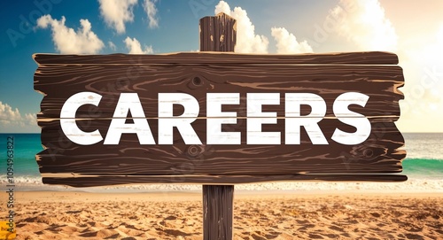 Careers lettering on wooden sign board with beach summer background