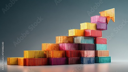 Cargo containers arranged into upward arrow, business growth, 3D illustration.