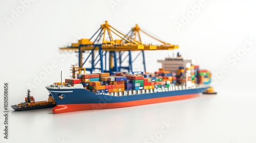 Cargo logistics scene with a freight ship at port on a white background