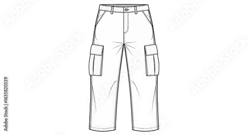 Cargo pants technical flat sketch. Fashion apparel template vector illustration for design.