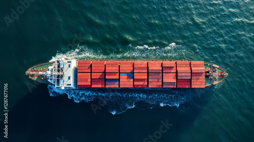 Cargo Ship at Sea, Aerial View of Global Shipping and Logistics, A ship Top View at Sea.