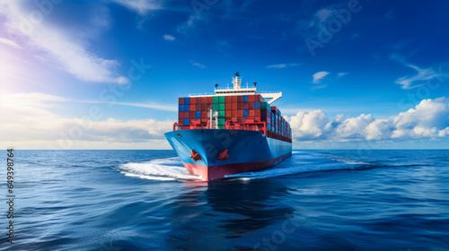 Cargo ship carry industrial containers by sea. Business shipment transportation concept. Ai generative illustration