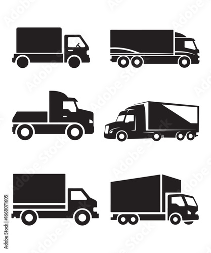Cargo Truck Silhouette Icons Vector Set for Transport and Delivery.