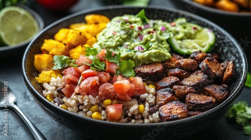 caribbean and central american cuisine with traditional rice beans plantains and guacamole served in authentic homemade style featuring cultural flavors and delicious tropical island food experience