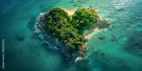 Caribbean Island in the Shape of a Love Heart. Aerial Shot, Holiday Concept.