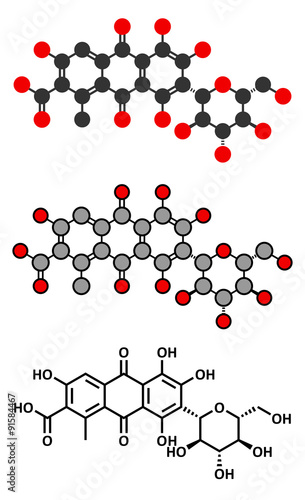 Carminic acid pigment molecule. Occurs naturally in cochineal.
