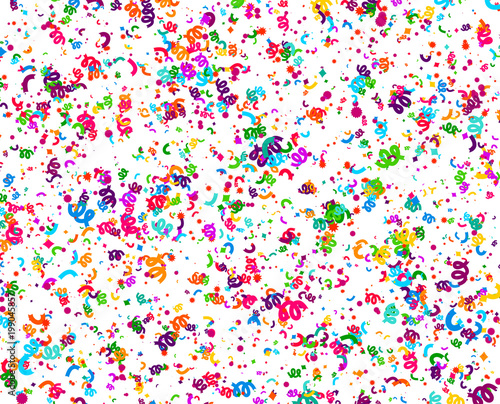 Carnaval or Festival Confetti. Colorful confetti pieces. Celebration party or Holiday background. Flying colorful glitter particles. Decoration pattern. Vector