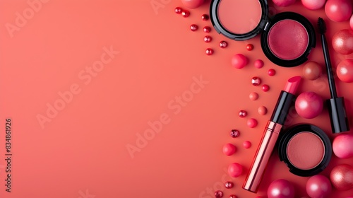 Carnival Cosmetics on Vibrant Coral A Minimalist Showcase of Glamour and Personal Care