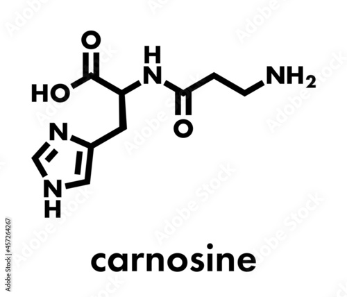 Carnosine molecule. Has antioxidant properties; commonly used in food supplements. Skeletal formula.