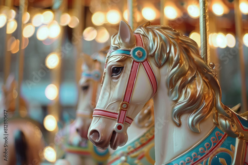 carousel horse decorated with colorful accents and lights