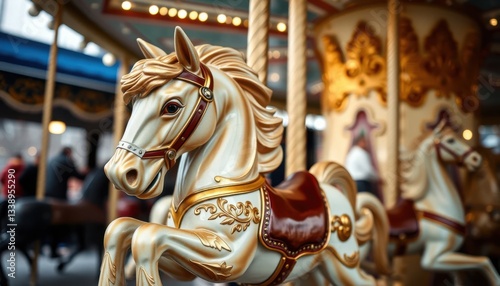 Carousel horse ride amusement park photography bright colors close-up joyful experience