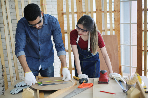 Carpenter grinding joinery product with carvings, finishing woodwork at the carpentry manufacturing