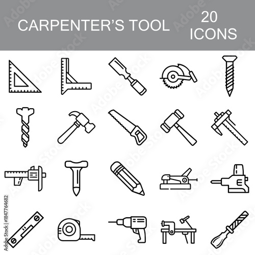 Carpenter's tools icons set transparent background