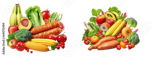 carrots, bananas, strawberries, snap peas, Broccoli isolated on transparent background . Generative AI