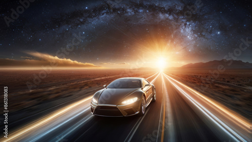 Cars move at high speed. until blurry light is created (concept image, advertisement)