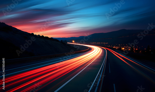Cars on night highway with colorful light trails
