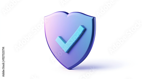 cartoon 3d Icon safety shield check mark perspective . Blue and purple symbol security safety icon. Checkmark in minimalistic style. 3d vector illustration. white background