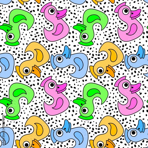 Cartoon animals birds seamless ducks pattern for wrapping paper and kids clothes and summer print