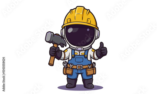 Cartoon Astronaut Builder Giving Thumbs-Up