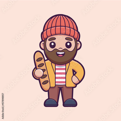 Cartoon baker man with baguette vector illustration for food and bakery related designs and projects