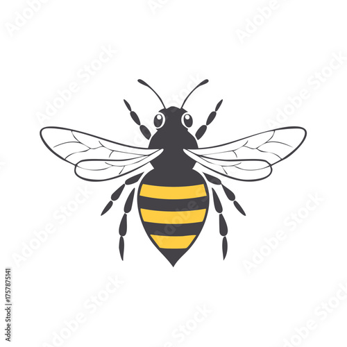 Cartoon bee with yellow and black stripes, insect illustration