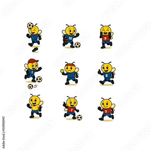 Cartoon Bees Playing Soccer Team Illustration