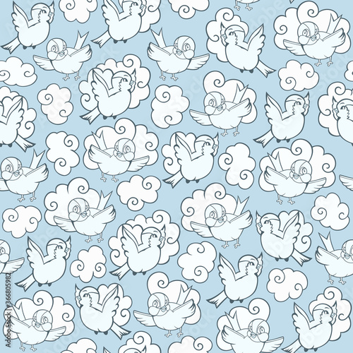 Cartoon birds vector seamless pattern