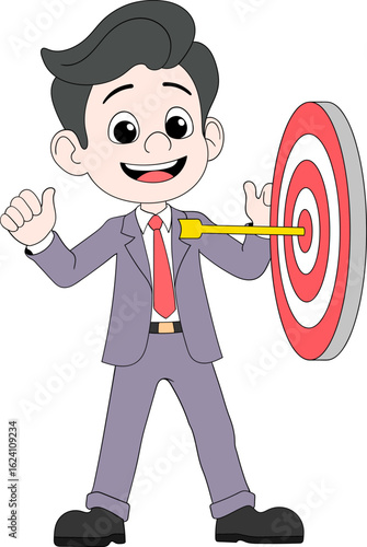 Cartoon Boy Hitting Bullseye Target with Arrow