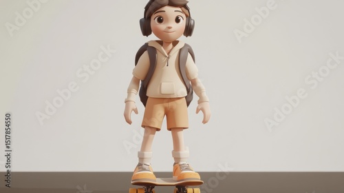 Cartoon boy on skateboard, headphones, backpack