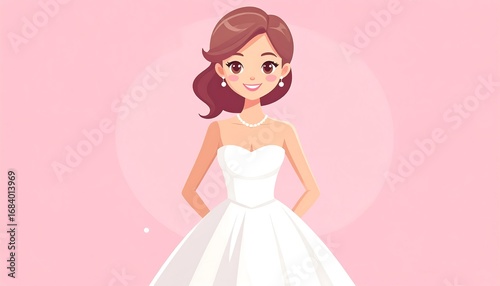 Cartoon bride in white dress