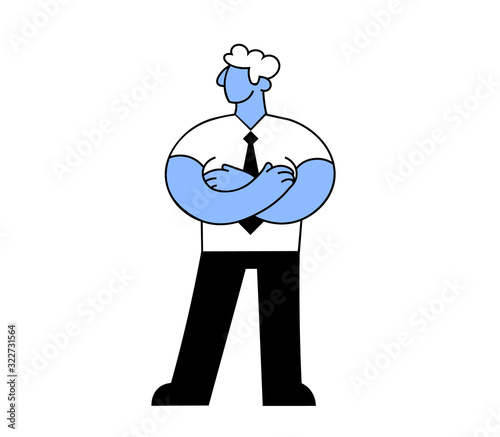 Cartoon businessman standing with arms crossed. Flat style vector illustration. Isolated on white background.