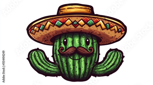Cartoon cactus with mustache and sombrero illustration Happy Cinco de mayo