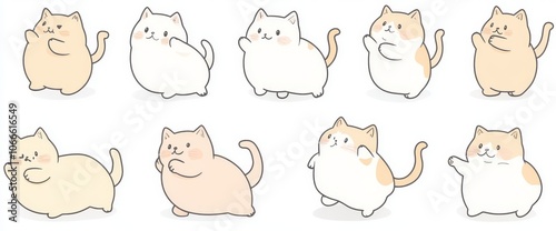 Cartoon cat or kitten characters design collection in different poses. Set of purebred pet animals isolated on white background.