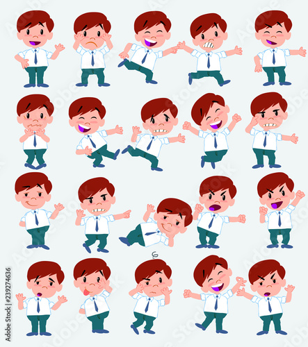 Cartoon character businessman in casual style. Set with different postures, attitudes and poses, doing different activities in isolated vector illustrations.