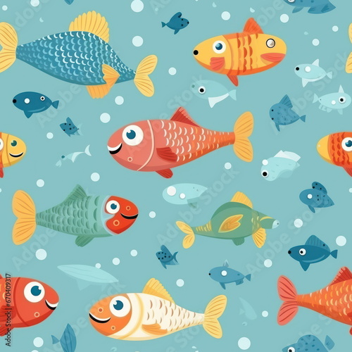 Cartoon character of fish, pattern for seamless