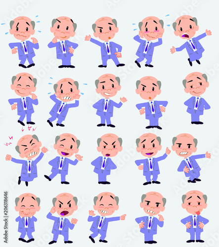 Cartoon character old businessman. Set with different postures, attitudes and poses, doing different activities in isolated vector illustrations.