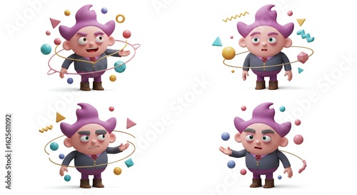 Cartoon character set playful expression