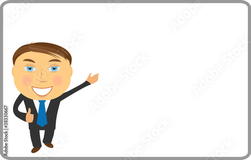 cartoon cheerful businessman with white advertising poster