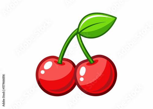 Cartoon Cherries with Vibrant Red Fruit and Glossy Surface – Fun and Fresh Illustration