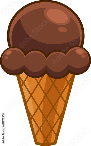 Cartoon Chocolate Ice Cream In The Waffle Cone. Vector Hand Drawn Illustration Isolated On Transparent Background
